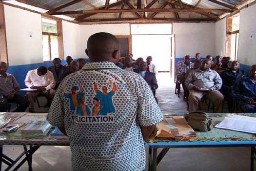 Manono (Nord-Katanga), le 15 Mai 2015, Une équipe de fonctionnaires la MONUSCO-Kalemie a animé une séance de sensibilisation sur la Résolution 2211 du Conseil de Sécurité et le rôle de la Mission en RDC, au profit des…