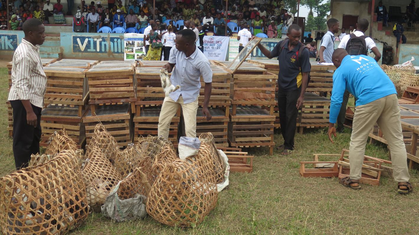 Des volailles et du matériel aratoire pour l'autonomier d'ex-miliciens et de femmes victimes de violences. Photo MONUSCO/Laurent Sam OUSSOU