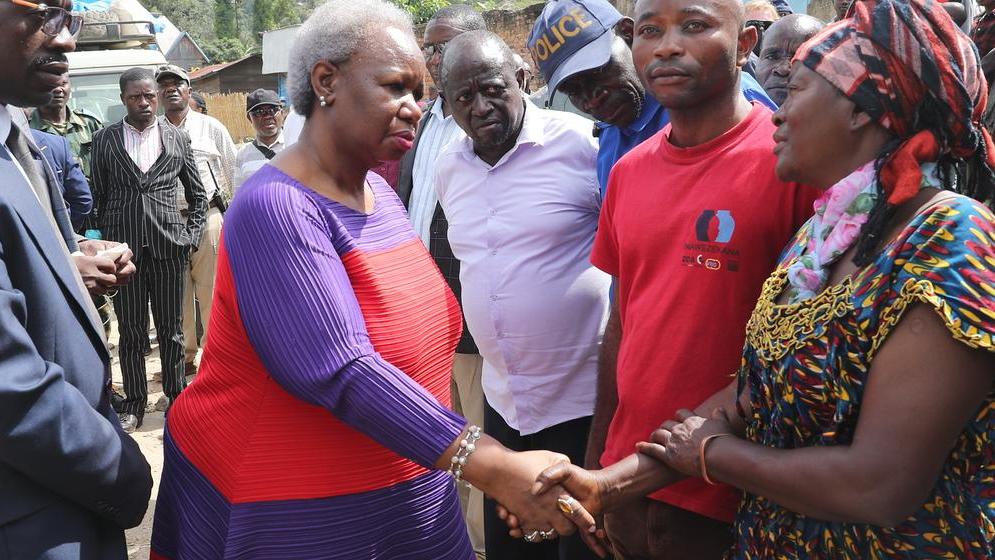 La cheffe de la MONUSCO, Bintou Keïta, rencontre des personnes affectées par des coulées de boue à Kalehe, dans la province du Sud-Kivu. MONUSCO / Michael Ali