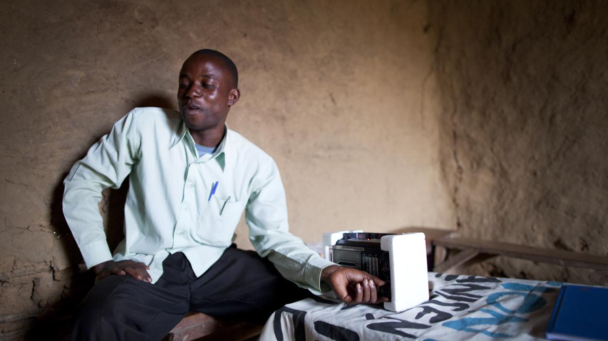 Un membre du Club des Amis de Radio Okapi (CARO) de Walikale, dans le Nord-Kivu, écoutant les nouvelles du 21 février 2012. MONUSCO/Sylvain Liechti