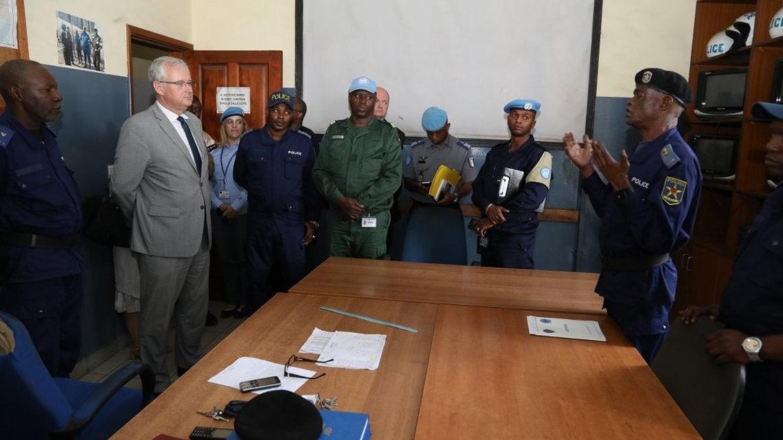 François Grignon visite l’inspection provinciale et le commissariat provincial de la PNC. Photo MONUSCO/Michael Ali