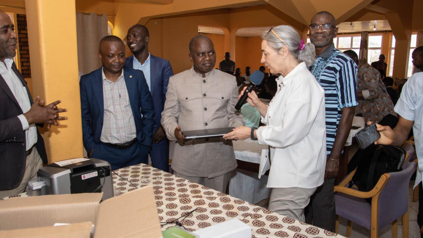 Dans le cadre de son appui aux institutions de la République, la MONUSCO a remis au ministre provincial des Transports un kit informatique permettant d’organiser l’identification des motards qui opèrent dans les transports en commun. Photo MONUSCO / Sy Koumbo