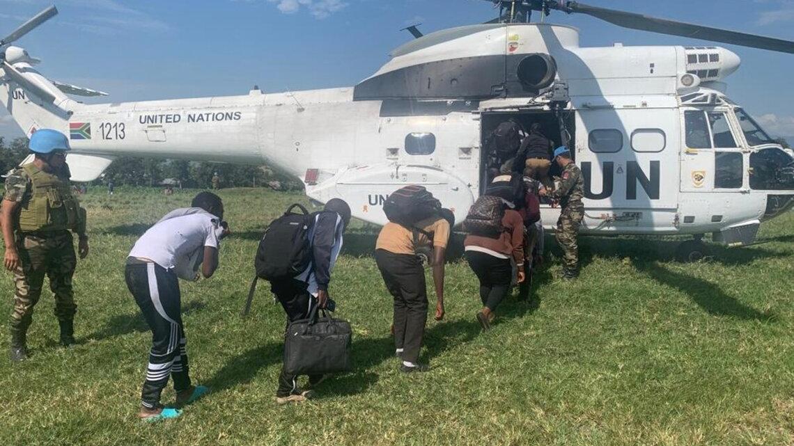Entre le 28 octobre et le 5 novembre 2022, la MONUSCO a évacué par hélicoptère 150 personnes de sa base de Kiwanja vers Goma. / Photos MONUSCO