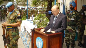 Kinshasa, 3 septembre 2010 - Une émouvante cérémonie s'est déroulée en matinée au quartier général de la Mission des Nations Unies pour la Stabilisation en RDC (MONUSCO) pour saluer la mémoire des trois Casques bleus indiens…