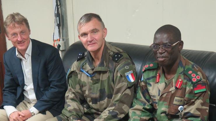 Sur la photo, on voit le General, Bernard Commis, entouré du chef de bureau de la MONUSCO, Warner Ten Kate et du General George Phiri , commandant de la Brigade d’intervention de la MONUSCO. Photo MONUSCO/Alain Coulibaly