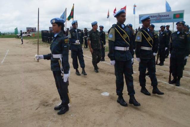 Bunia – 16 octobre 2015: Plus de 300 casques bleus de la force aérienne bangladaise de la Brigade de l’Ituri ont reçu la médaille du mérite des Nations Unies des mains du Lieutenant-Général Carlos Alberto Dos Santos Cruz…
