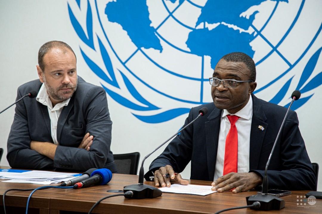 Le porte-parole de la MONUSCO, Mathias Gillmann et Représentant en RDC du Fonds des Nations Unies pour la population (UNFPA), Dr Eugene Kongnyuy. Photo UNFPA