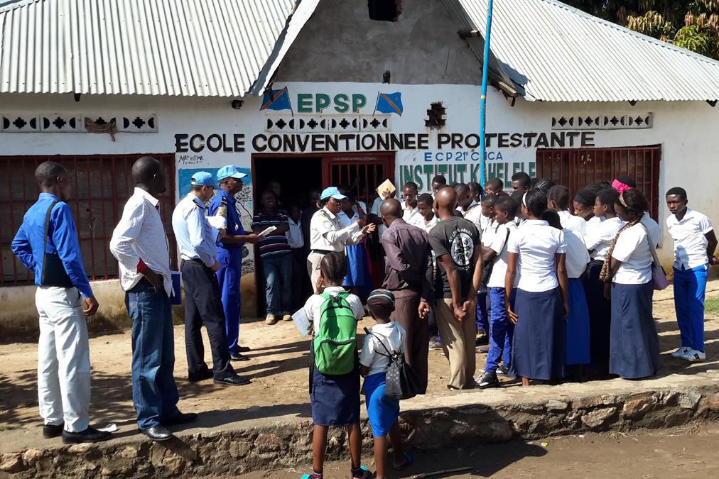 Uvira, le 7 mars 2018 - Une cinquantaine d’élèves de l’institut scolaire KAHELELE, accompagnés de leurs enseignants, ont écouté les officiers de la police des Nations Unies (UNPOL) sur les thèmes de la lutte contre l…
