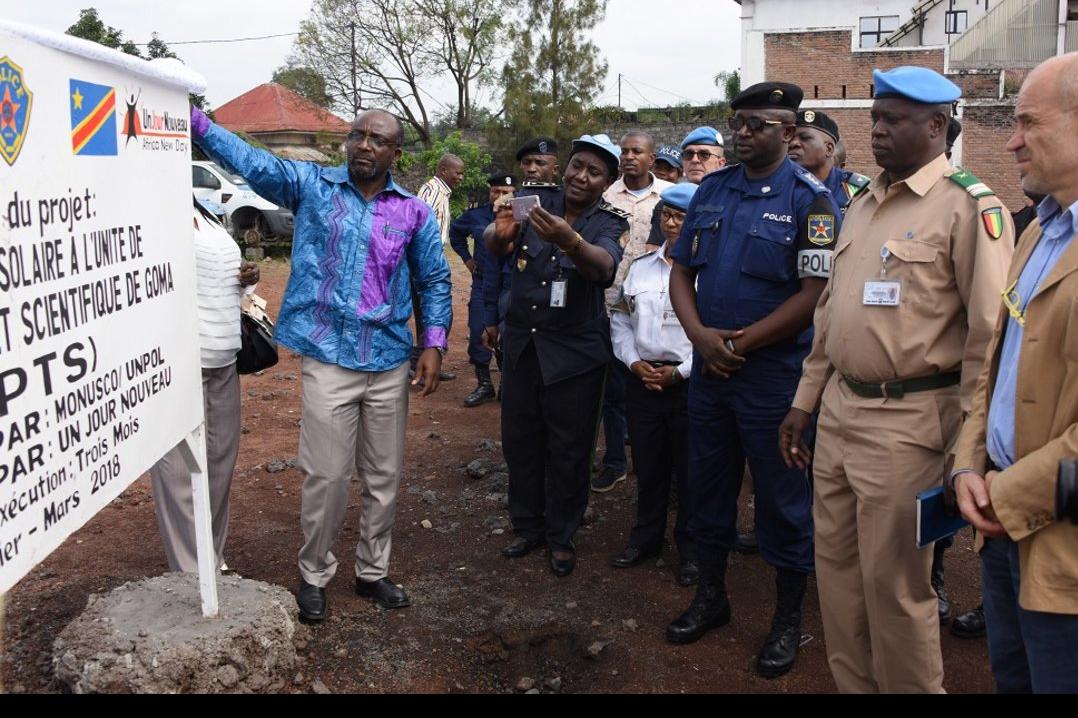 Goma, le 20 février 2018 – Le Chef du bureau de la MONUSCO du Nord Kivu a procédé à une cérémonie de lancement d’un don de kit complet de panneau solaire à l’Unité technique et scientifique de la Police nationale congolaise…