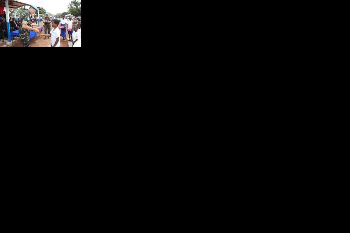 Oicha – 28 novembre 2017 : La Police de la MONUSCO, dans le cadre de la Stratégie Opérationnelle de Lutte Intégrée contre la criminalité à Oicha, a animé une séance de sensibilisation sur l’usage des numeros vert d’urgence…