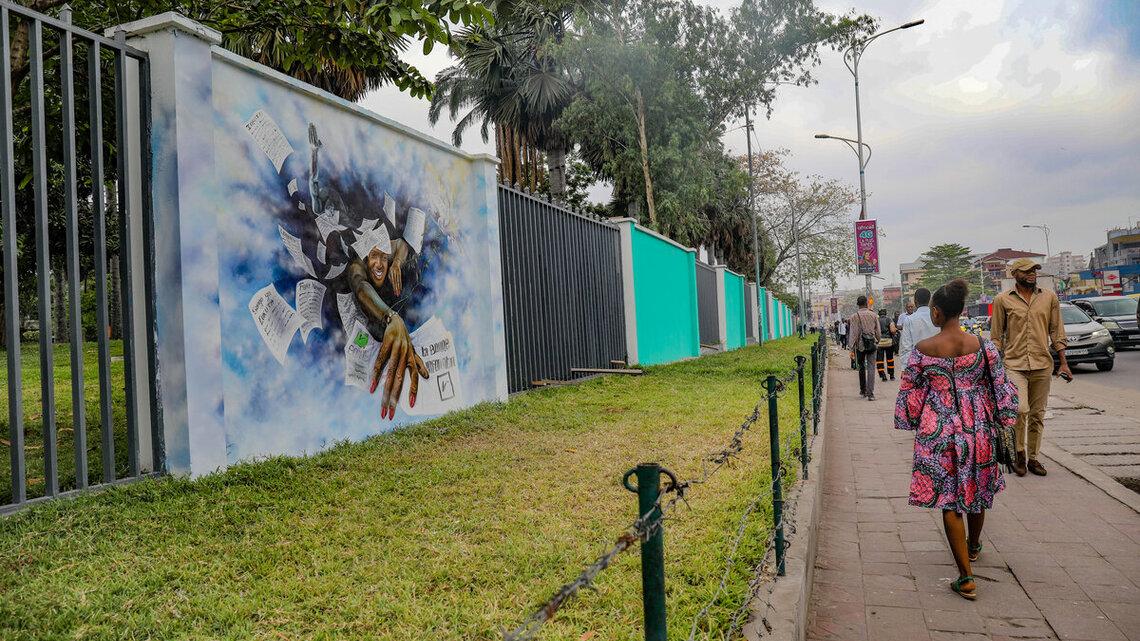La fresque peut être admirée avenue de la Libération sur le mur extérieur de l'Académie des Beaux-Arts à Kinshasa. / Photos Jean-Claude Wenga