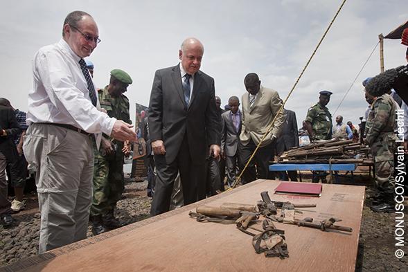 Goma, 10 novembre 2012 - Le Représentant spécial du Secrétaire général des Nations Unies en République démocratique du Congo, Roger Meece, et le Vice-Premier ministre également Ministre congolais de la Défense, Alexandre Luba…