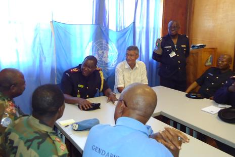 Photo:Monusco/Paul-Richard Malengela Mbandaka, 10 novembre 2011 - Conduite par le Commissaire général intérimaire de la Police Nationale Congolaise (PNC), le Général Charles Bisengimana, la délégation du Comité national de…