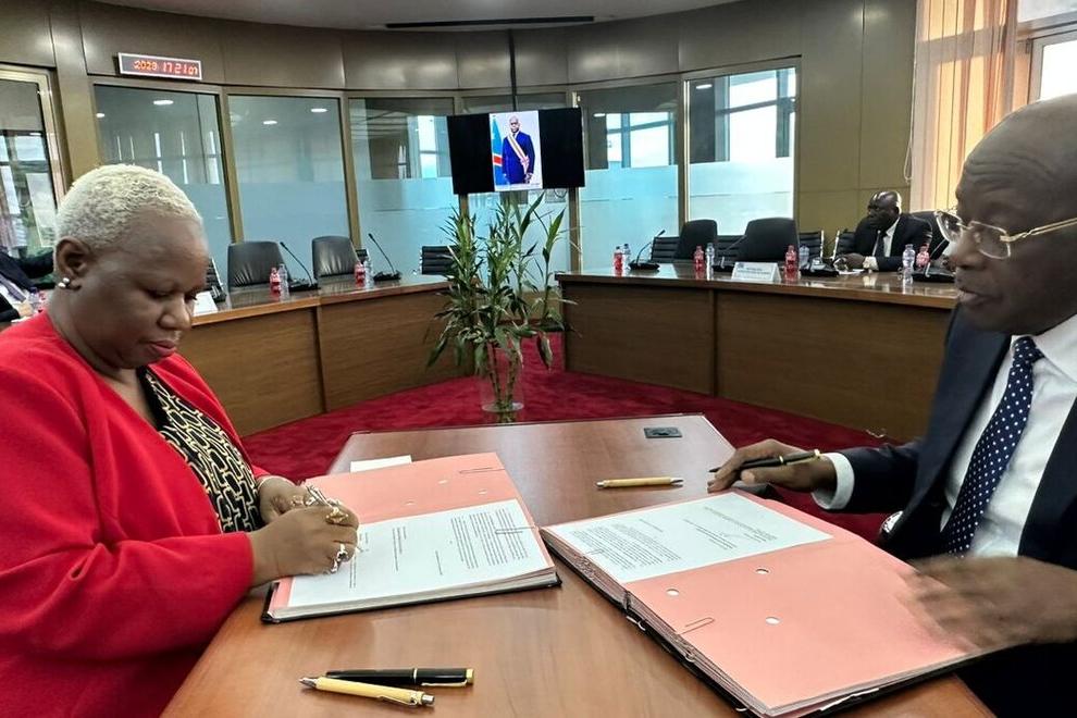Kinshasa, le 22 novembre 2023 : M. Christophe Lutundula et Mme Bintou Keita ont signé mardi à Kinshasa une note sur le retrait accéléré, progressif, ordonné et responsable de la MONUSCO de la RDC contenant un plan et un…